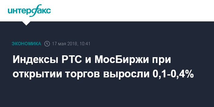Индексы РТС и МосБиржи при открытии торгов выросли 0,1-0,4%