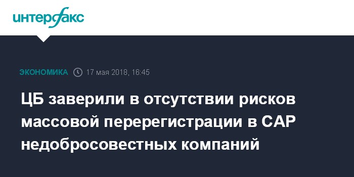 ЦБ заверили в отсутствии рисков массовой перерегистрации в САР недобросовестных компаний