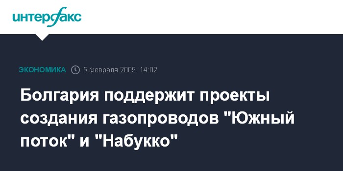 Болгария поддержит проекты создания газопроводов "Южный поток" и "Набукко"
