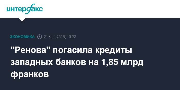 "Ренова" погасила кредиты западных банков на 1,85 млрд франков