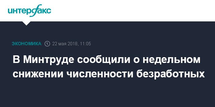 Москва. 22 мая. INTERFAX.RU - Численность официально зарегистрированных безработных в России за неделю со 2 по 8 мая снизилась на 1,9% и составила 740 510 человек, говорится в сообщении Минтруда РФ, поступившем в "Интерфакс" во вторник".