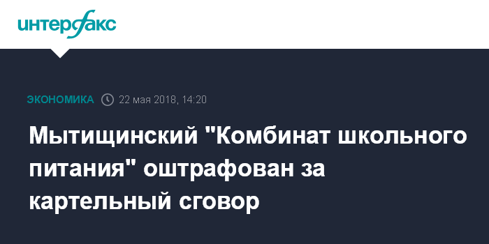 Мытищинский "Комбинат школьного питания" оштрафован за картельный сговор