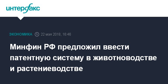 Минфин РФ предложил ввести патентную систему в животноводстве и растениеводстве