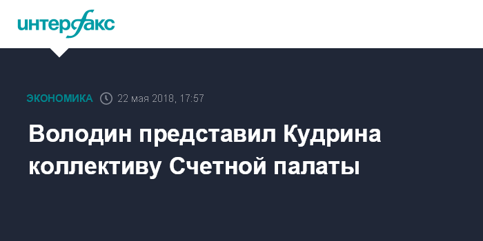 Москва. 22 мая. INTERFAX.RU - Спикер Госдумы Вячеслав Володин представил коллективу Счетной палаты РФ Алексея Кудрина, назначенного во вторник председателем этой контрольной структуры.