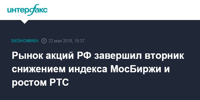 Рынок акций РФ завершил вторник снижением индекса МосБиржи и ростом РТС