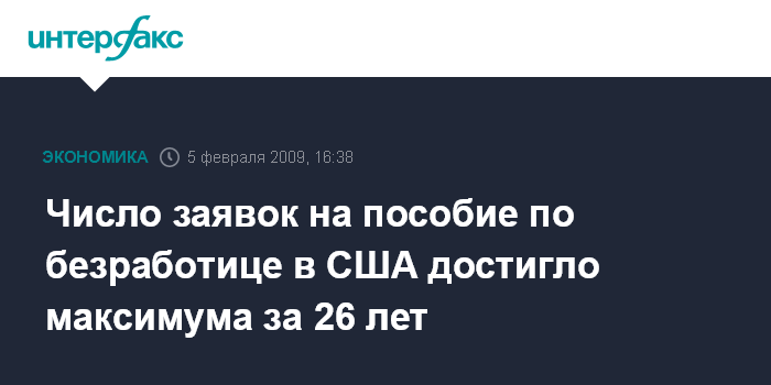 Число заявок на пособие по безработице в США достигло максимума за 26 лет
