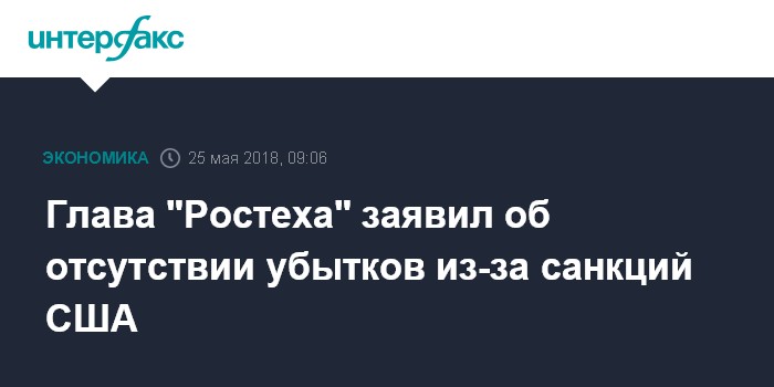 Москва. 25 мая. INTERFAX.RU - "Ростех" не несет убытков от попадания "Рособоронэкспорта" под санкции США, заявил глава госкорпорации Сергей Чемезов.