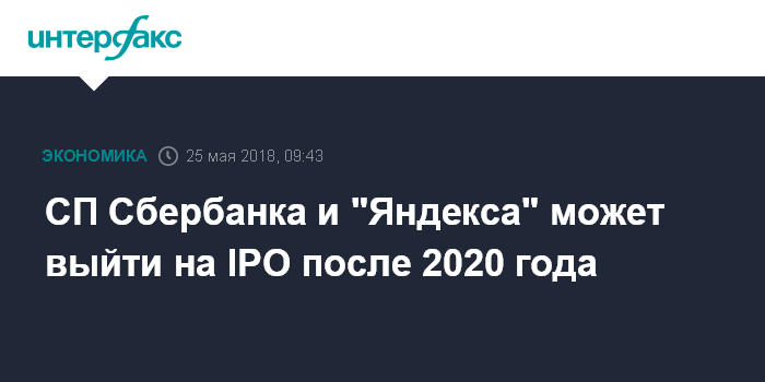 СП Сбербанка и "Яндекса" может выйти на IPO после 2020 года