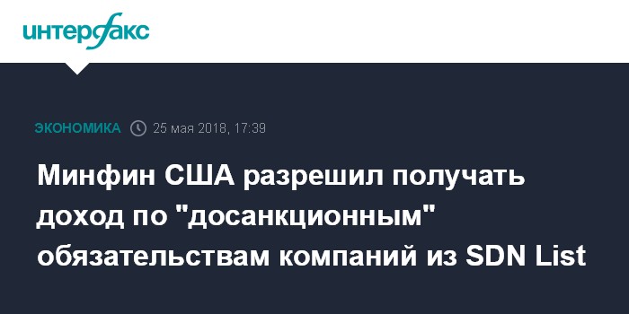Москва. 25 мая. INTERFAX.RU - Подразделение Минфина США, отвечающее за правоприменение в области санкций (OFAC), сделало важное для рынка разъяснение по вопросу о законности получения дохода по обязательствам компаний, которые подпали под санкции 6 апреля.
