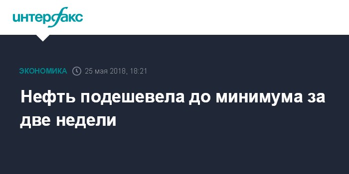 Москва. 25 мая. INTERFAX.RU - Падение цен на нефть продолжается в пятницу из-за опасений, что Россия и Организация стран-экспортеров нефти (ОПЕК) нарастят нефтедобычу. Котировки опустились до минимума почти за две недели.