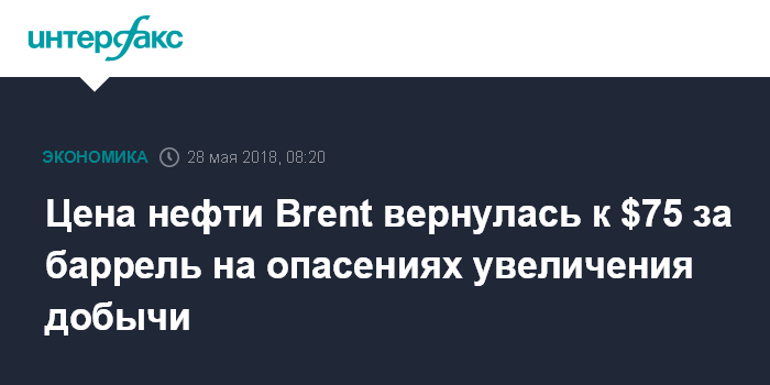 Цена нефти Brent вернулась к $75 за баррель на опасениях увеличения добычи