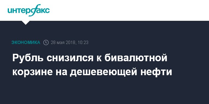 Москва. 28 мая. INTERFAX.RU - Доллар США немного снижается, евро растет на "Московской бирже" в понедельник утром; рубль снижается к бивалютной корзине, отыгрывая продолжающую дешеветь нефть.