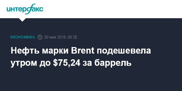Нефть марки Brent подешевела утром до $75,24 за баррель