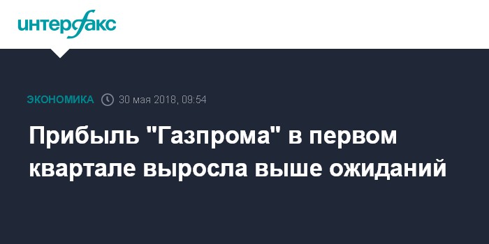 Москва. 30 мая. INTERFAX.RU - Чистая прибыль "Газпрома" по международным стандартам (МСФО) в первом квартале 2018 года выросла на 11% - до 371,623 млрд рублей, свидетельствует отчетность компании.