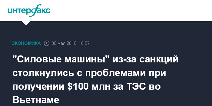 Банки-нерезиденты отказываются проводить платежи в адрес подсанкционного лица, а у вьетнамского заказчика - государственной компании - нет полномочий от органов власти на изменение контракта, а также валюты и банков, задействованных в расчетах, отмечают "Силовые машины". Сама компания повлиять на позицию заказчика без поддержки РФ не может.