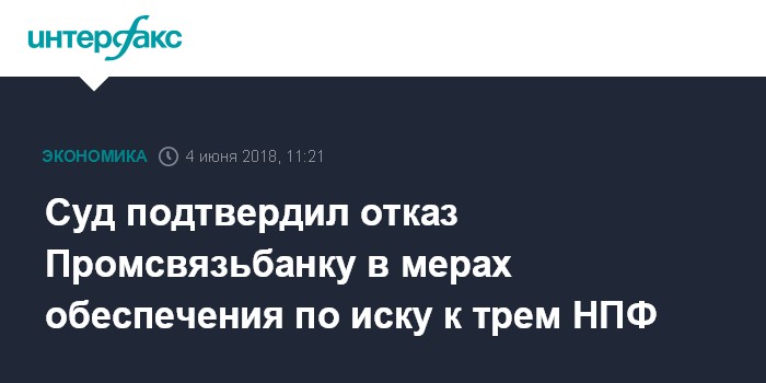 Суд подтвердил отказ Промсвязьбанку в мерах обеспечения по иску к трем НПФ