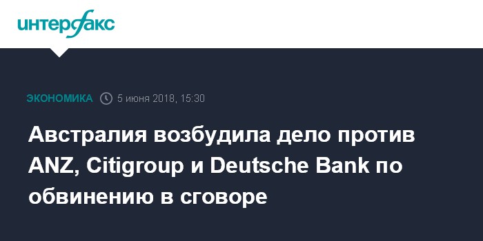 Австралия возбудила дело против ANZ, Citigroup и Deutsche Bank по обвинению в сговоре
