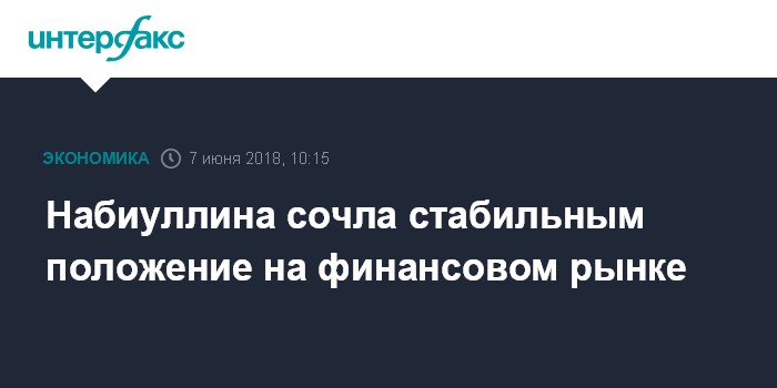 Москва. 7 июня. INTERFAX.RU - ЦБ РФ уверен в долгосрочной устойчивости финансового рынка и его разных сегментов, заявила глава Банка России Эльвира Набиуллина на Международном финансовом конгрессе.