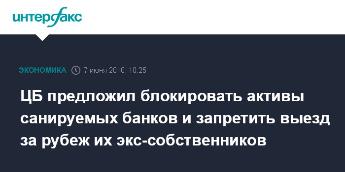 ЦБ предложил блокировать активы санируемых банков и запретить выезд за рубеж их экс-собственников
