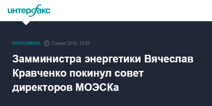 Замминистра энергетики Вячеслав Кравченко покинул совет директоров МОЭСКа