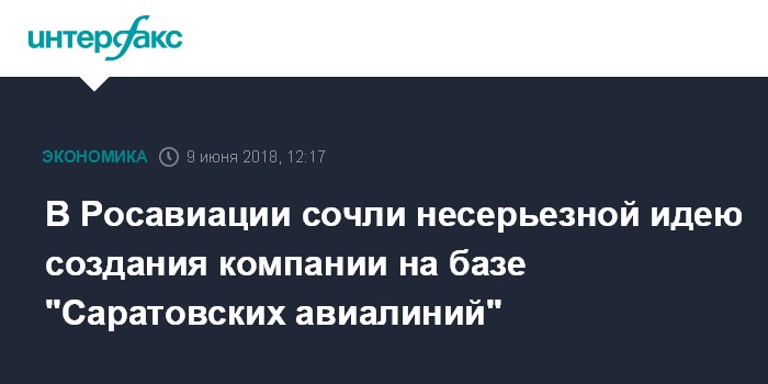 Москва. 9 июня. INTERFAX.RU - Глава Росавиации Александр Нерадько назвал несерьезной попытку владельца авиакомпании "Саратовских авиалиний", сертификат эксплуатанта которой был ранее аннулирован, создать новую авиакомпанию.