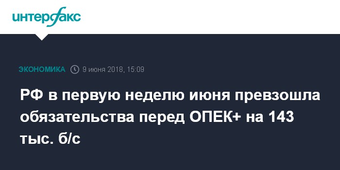 РФ в первую неделю июня превзошла обязательства перед ОПЕК+ на 143 тыс. б/с