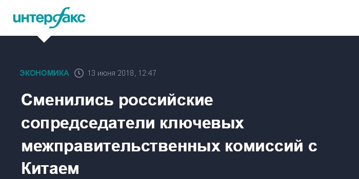 Сменились российские сопредседатели ключевых межправительственных комиссий с Китаем