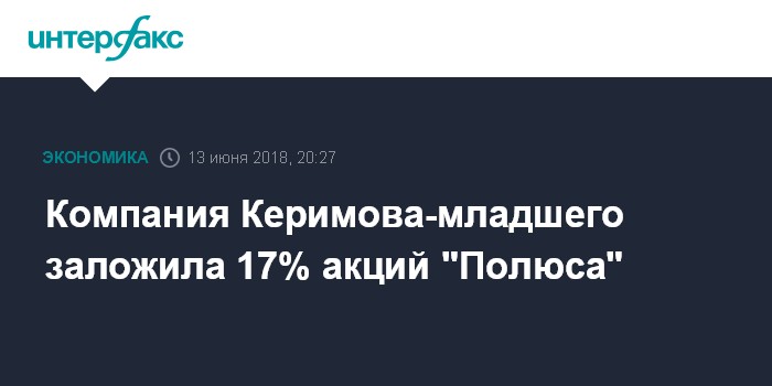 Компания Керимова-младшего заложила 17% акций "Полюса"