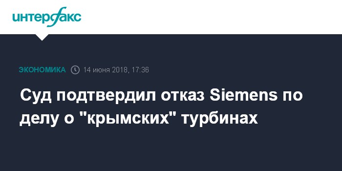 Москва. 14 июня. INTERFAX.RU - Арбитражный суд Московского округа в четверг подтвердил отказ германской компании Siemens по делу о "крымских" турбинах, говорится в информации на сайте суда.