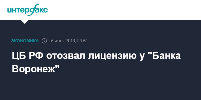 ЦБ РФ отозвал лицензию у "Банка Воронеж"