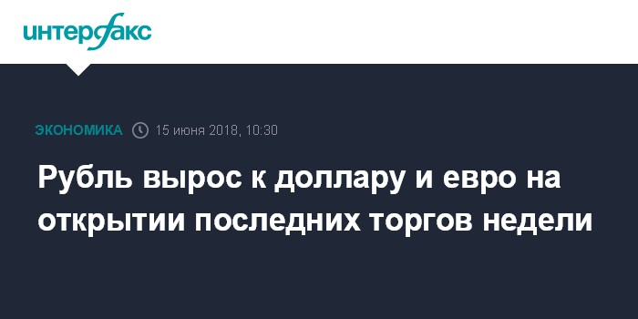 Москва. 15 июня. INTERFAX.RU - Доллар США и евро снижаются на Московской бирже в пятницу утром; рубль укрепляется к бивалютной корзине на открытии последних торгов недели, продолжая рост предыдущего дня.