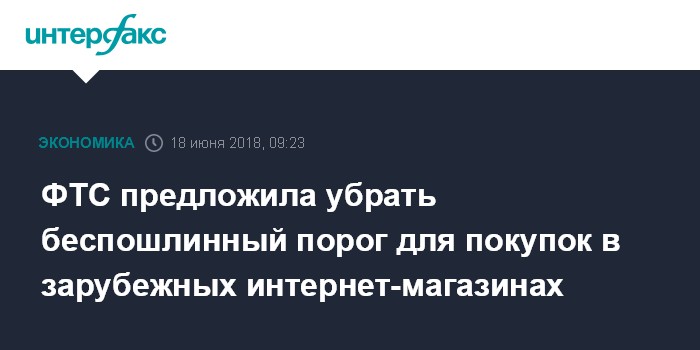 Москва. 18 июня. INTERFAX.RU - Федеральная таможенная служба (ФТС) обратилась в Минфин РФ с предложением ввести пошлины на покупки любой стоимости в зарубежных интернет-магазинах, пишет в понедельник газета "Ведомости" со ссылкой на двух федеральных чиновников.