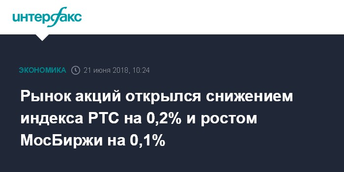 Рынок акций открылся снижением индекса РТС на 0,2% и ростом МосБиржи на 0,1%