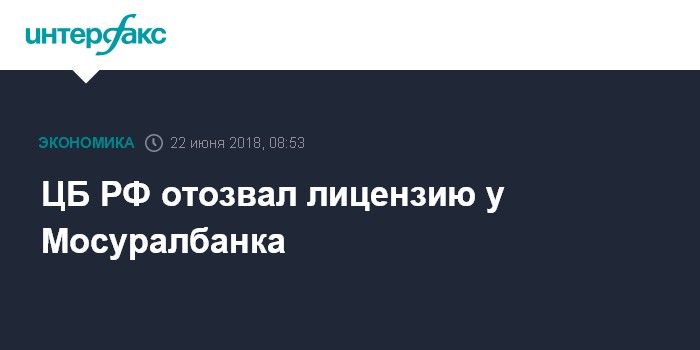 ЦБ РФ отозвал лицензию у Мосуралбанка
