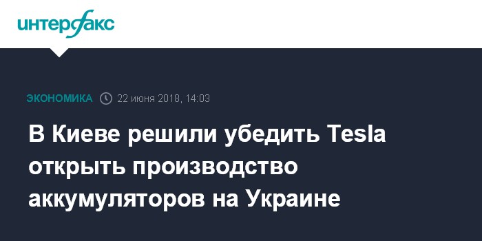 В Киеве решили убедить Tesla открыть производство аккумуляторов на Украине