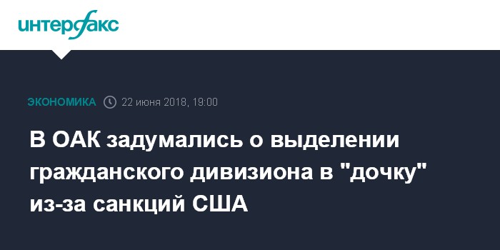 Москва. 22 июня. INTERFAX.RU - Санкции США подтолкнули ПАО "Объединенная авиастроительная корпорация" (ОАК) к пересмотру модели перехода на единую акцию, утвержденной советом директоров в сентябре 2017 года.