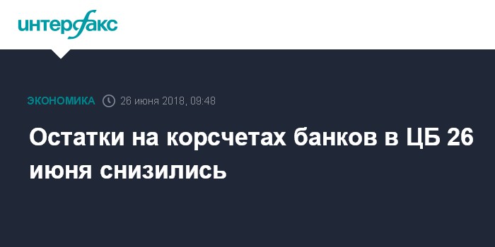 Остатки на корсчетах банков в ЦБ 26 июня снизились