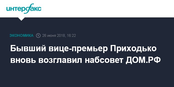 Москва. 26 июня. INTERFAX.RU - Председателем наблюдательного совета "ДОМ.РФ" (бывшее "АИЖК") вновь стал Сергей Приходько, который в настоящее время является первым замглавы аппарата правительства РФ.