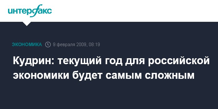 Москва. 9 февраля. INTERFAX.RU - Вице-премьер, министр финансов России Алексей Кудрин считает, что текущий год для российской экономики будет самым сложным.