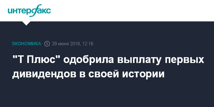 Москва. 29 июня. INTERFAX.RU - Акционеры ПАО "Т Плюс" одобрили выплату дивидендов в размере 2,9 млрд рублей из чистой прибыли за 2017 год, передал корреспондент "Интерфакса" с годового собрания акционеров компании.