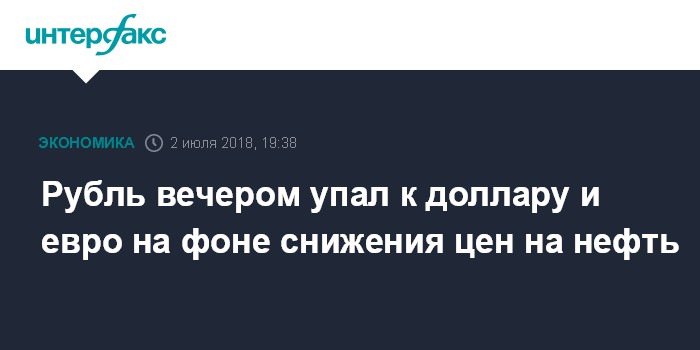 Как отмечают эксперты "Интерфакс-ЦЭА", рубль вечером ускорил снижение к доллару и евро и торгуется вблизи минимальных значений с начала торгов понедельника, отыгрывая скачок вниз цен на рынке энергоносителей после их существенного роста по итогам прошлой недели (Brent подорожала на 5,2%, WTI - на 8%). Завершение основных налоговых выплат июня привело к снижению потребности в рублевой ликвидности со стороны компаний-экспортеров, что, равно как и ежедневные покупки валюты со стороны Минфина (19,1 млрд руб. в день) в рамках бюджетного правила, также оказывает давление на котировки рубля на торгах в понедельник.