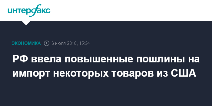 РФ ввела повышенные пошлины на импорт некоторых товаров из США