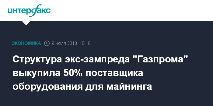Структура экс-зампреда "Газпрома" выкупила 50% поставщика оборудования для майнинга