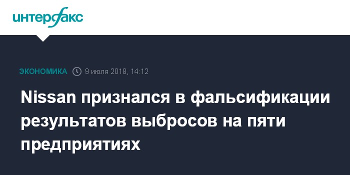 Москва. 9 июля. INTERFAX.RU - Японский автопроизводитель Nissan признался в фальсификации его сотрудниками данных об уровне выбросов и эффективности расхода топлива в легковых автомобилях.