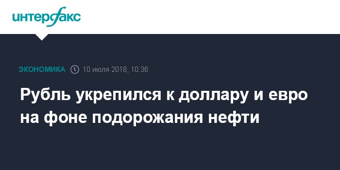 Как отмечают эксперты "Интерфакс-ЦЭА", рубль укрепляется к доллару и евро следом за дорожающей нефтью и в ожидании встречи президентов РФ и США Владимира Путина и Дональда Трампа, которая состоится 16 июля в Хельсинки. Участники торгов надеются на смягчение геополитической напряженности вокруг России после личной беседы глав государств.