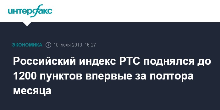 Москва. 10 июля. INTERFAX.RU - Индекс РТС, один из основных российских фондовых индикаторов, во вторник поднялся до рубежа 1200 пунктов впервые за 1,5 месяца на фоне подъема мировых фондовых площадок и нефти.