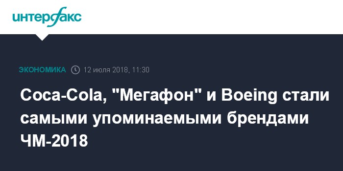 Coca-Cola, "Мегафон" и Boeing стали самыми упоминаемыми брендами ЧМ-2018
