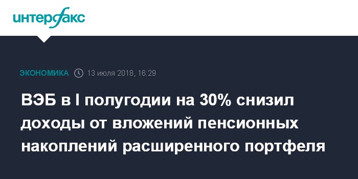 ВЭБ в I полугодии на 30% снизил доходы от вложений пенсионных накоплений расширенного портфеля