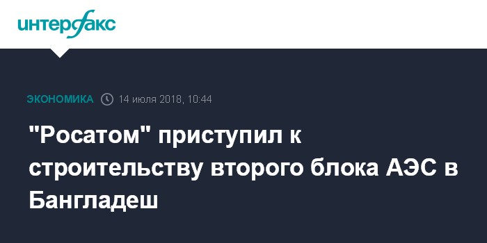 Москва. 14 июля. INTERFAX.RU - ГК "Росатом" приступила к строительству энергоблока №2 АЭС "Руппур" в Бангладеш, сообщила госкорпорация.