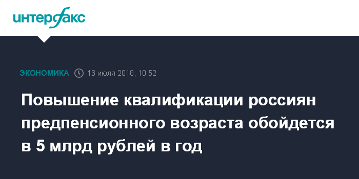 Москва. 16 июля. INTERFAX.RU - Правительство планирует выделять около 5 млрд рублей в год на программу повышения квалификации россиян предпенсионного возраста, заявил глава Минтруда Максим Топилин.